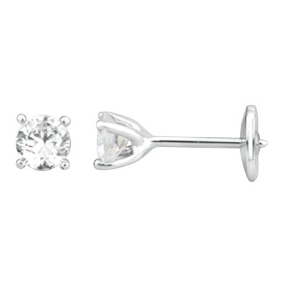 Boucles d'oreilles diamants 4 griffes or blanc 18 carats. Système tige/alpa de sécurité. Couleur GH qualité SI 0,60ct