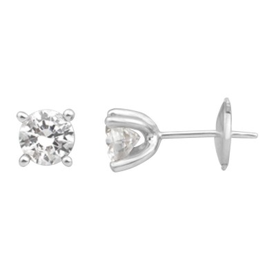 Boucles d'oreilles diamants 4 griffes or blanc 18 carats. Système tige/alpa de sécurité. Couleur GH qualité SI 1,00ct