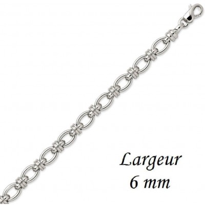 Bracelet Or Blanc pour femme. Bracelet or blanc 18 carats composé de grands maillons ovales, alternés avec deux petits maillons. Ce bracelet or blanc pour femmes est équipé d'un fermoir mousqueton, et mesure 6 mm de large
