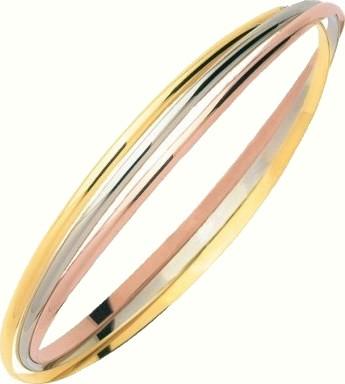 Bracelet pour femme 3 ors 18 carats, joncs massifs entrelacés.