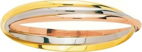 Bracelet Jonc pour femme 3 ors 18 carats. Bracelet Cartier. Bracelet 3 joncs massifs entrelacés.