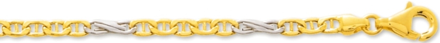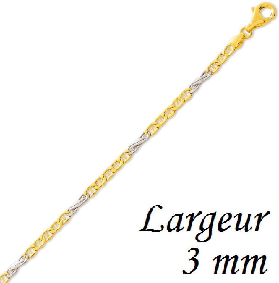 Chaîne homme 2 ors 18 carats. Cette Chaîne homme est composé de mailles massives alternées or jaune et or blanc. Fermoir mousqueton. Chaîne homme largeur 3 mm.