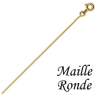 Chaîne tout or, or jaune maille ronde 18 carats. Cette chaîne or jaune maille ronde massive, est semi rigide et peut convenir pour toute sorte de pendentif or, pendentif diamant, pendentif médaille... Fermoir anneau ressort.