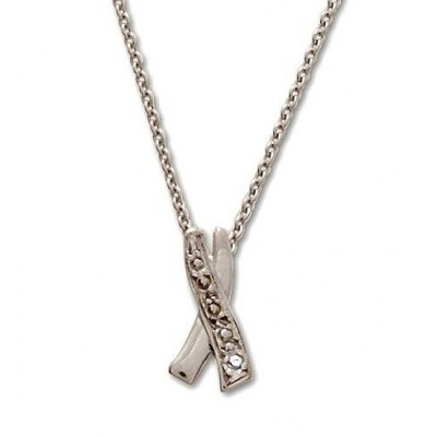 Chaîne pendentif or blanc 18 carats, diamant. Collier composé d'une chaîne forçat ronde massive et d'un pendentif empierré d'un diamant serti grain.