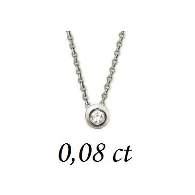 Collier en or Blanc 18 carats composé d'un diamant de 0.08 carat de couleur GH et de qualité P1. Le diamant en serti clos est accompagné d'une chaîne maille forçat de 1 mm de diamètre.
