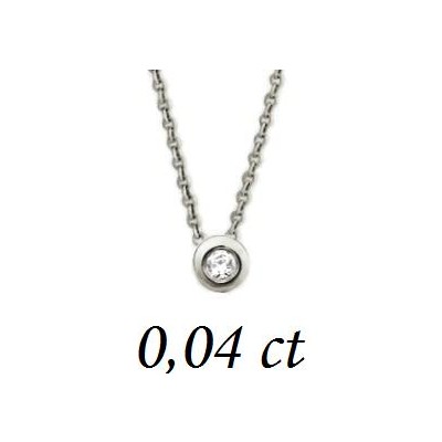 Collier en or Blanc 18 carats composé d'un diamant de 0.04 carat de couleur GH et de qualité P1. Le diamant en serti clos est accompagné d'une chaîne maille forçat de 1 mm de diamètre.