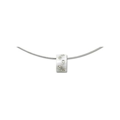 Collier céramique, or blanc 18 carats et diamants. Pendentif en céramique blanche empierré de diamants sertis clos, coulissant sur un cordon de soie blanche aux embouts or blanc.