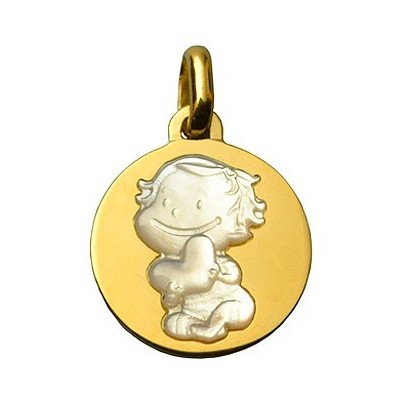 Médaille Laïque Or Jaune 18 carats et Nacre. Ce pendentif avec une figurine en NACRE BLANCHE peut s'offrir a un bébé, un enfant ou une maman. Un pendentif qui fera plaisir pour une naissance, un baptême.
