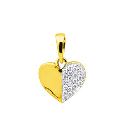 Pendentif diamants femme 2 ors 18 carats. Ce pendentif femme forme coeur est serti de diamants sur la moitié. La partie empierrée est rhodiée.