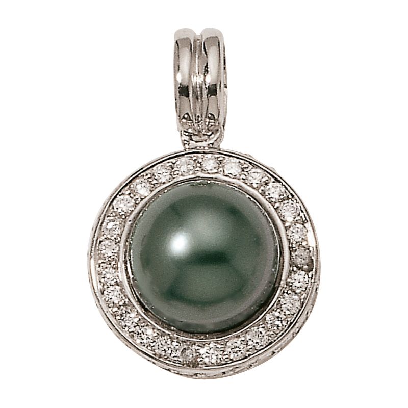 Pendentif joaillerie diamants or blanc 18 carats. Ce pendentif joaillerie diamants est composé d'une perle de Tahiti de 9 mm et de 0.25 carat(s) de diamants.