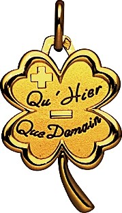 Achat de médailles d'Amour A-AUGIS, sur votre bijouterie joaillerie Princesse Diamants. Princesse Diamants vente de médailles d'Amour en or 18 carats 750 millièmes " + qu'hier, - que demain "