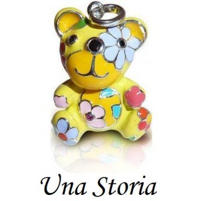 Pendentif UNA STORIA nounours assis modèle en argent 925/1000e et émail de couleur jaune. Ce bijoux argent nounours assis est un pendentif en émail et les pierres des oxydes de zirconium serti clos.
