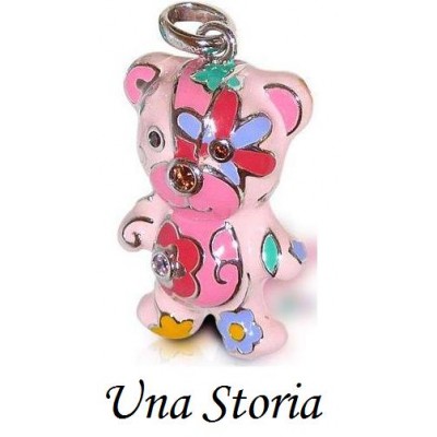 Pendentif UNA STORIA nounours petit modèle en argent 925/1000e et émail de couleur rose. Ce bijoux argent est un pendentif en émail et les pierres des oxydes de zirconium serti clos.